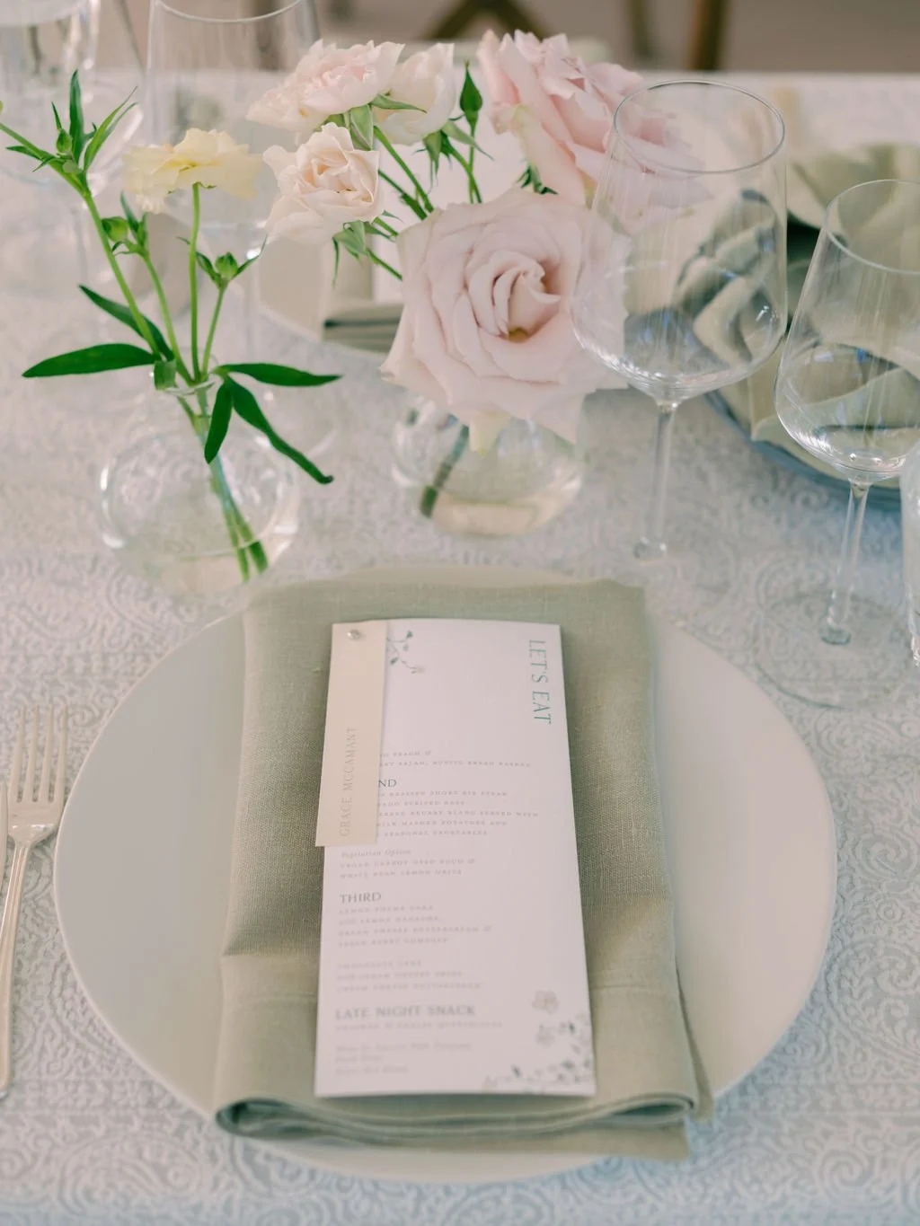 Abbey and Graham were married on the first weekend of summer in one of the most picturesque places for a Colorado wedding; Flying Diamond Ranch! And the day was perfect. Guests flew in from out of state, to Steamboat Springs, which is a place that the couple holds near and dear. They wanted a day that was elegant and classic but also clean and minimalistic. The sister of the bride, a Florida wedding planner and also a past client of ours, planned and designed everything alongside local planner, Morgan Ashley Cox. The weather cooperated perfectly to allow for an aspen grove ceremony and a lovely cocktail hour among the trees, with mostly neutral, spring blooms and a touch of color with pale yellow, blush, and vibrant greens. Reception and dinner decor consisted of delicate bud vases, colorful and twinkling candles, and soft textiles paired with contemporary glass and white stone. It was the perfect mixture.